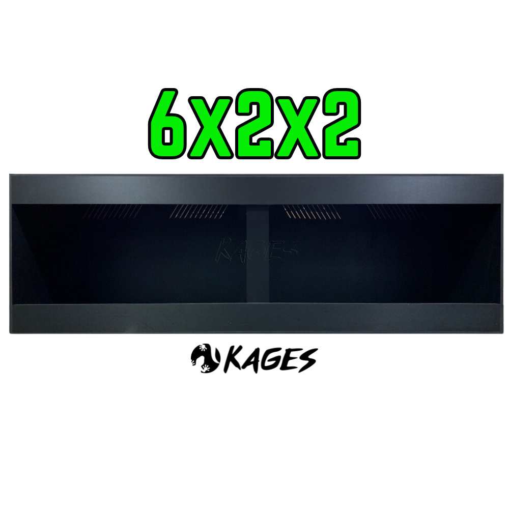 This Bio Dude® Exclusive Enclosure by Kages™ features: ½” black extruded PVC construction Premium abrasion resistant polycarbonate sliding doors Vents in the rear and sides 4” substrate board Approximate Outside Dimensions: 71”x23”x23.5“ SPECIES RECOMMENDATIONS Red Tailed Boa Young Tegu Box Turtles